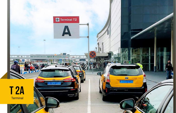 Accede al vestíbulo después de pasar la zona de recogida de equipaje. Sigue las indicaciones de Taxi para bajar a la Planta 0 zona Reserva de Taxi justo bajando escalera / Rampa electrica... Dirígete a la cabecera de la fila de taxis. Tu Taxi te estará esperando con los cuatro intermitentes encendidos.